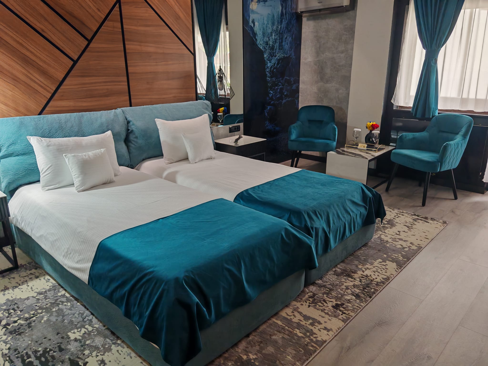 Complexul Hotelier are un standard de 4 Stele si dispune de 40 camere duble si twin si 5 apartamente, 5 parcari propri, 2 piscine (acoperita si exterioara cu apa termala), 2 saune (umeda si uscata), sala de conferinte de 40 de locuri si un restaurant de aproximativ 135 locuri.