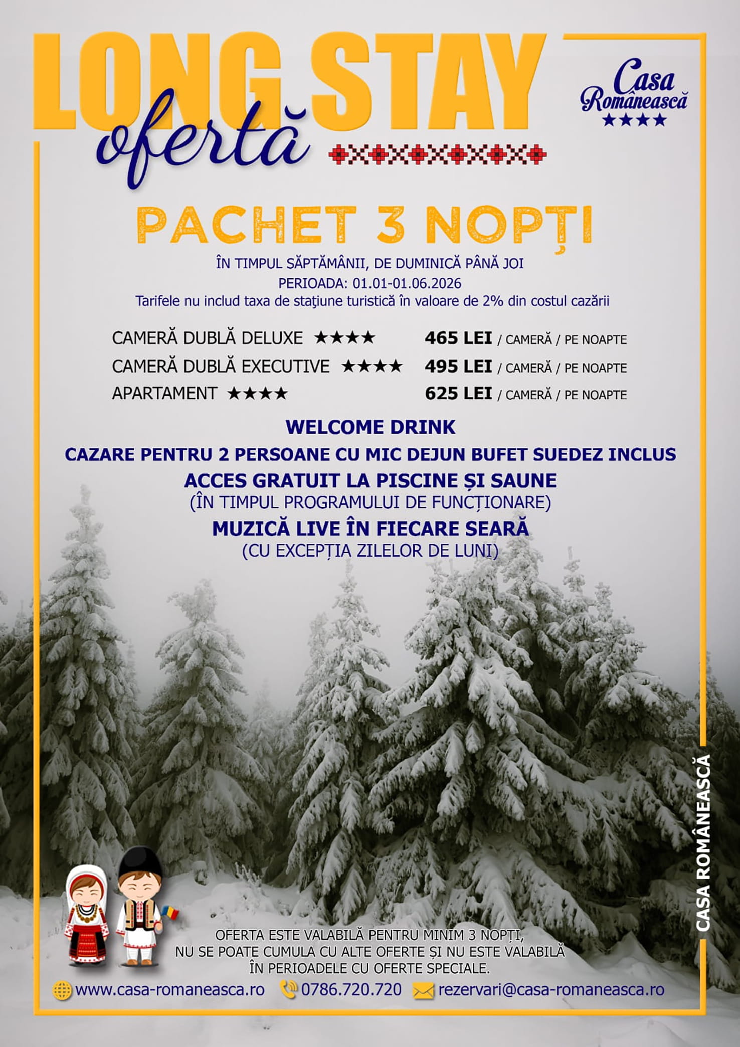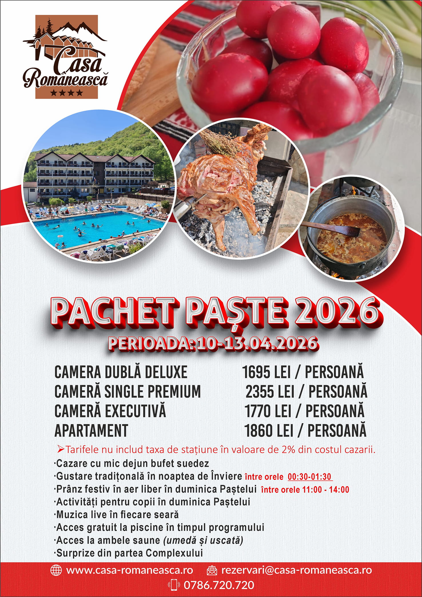 Rezervări și informații suplimentare la numărul de telefon 0786.720.720, adresa de email rezervari@casa-romaneasca.ro sau printr-un mesaj privat pe Facebook.